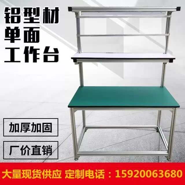 特点。白色皮条封边。质感好耐磨性好,耐磨耐烫不变形。主架采用40*40*1. 2mm的铝型材,每台标配带排插1个,配电线,配作业指导书,配调节脚,桌脚采用五金配件(采用德国BMB五金配件结构简单连接牢固安装快捷等特点),长度,宽度,高度可以订做。